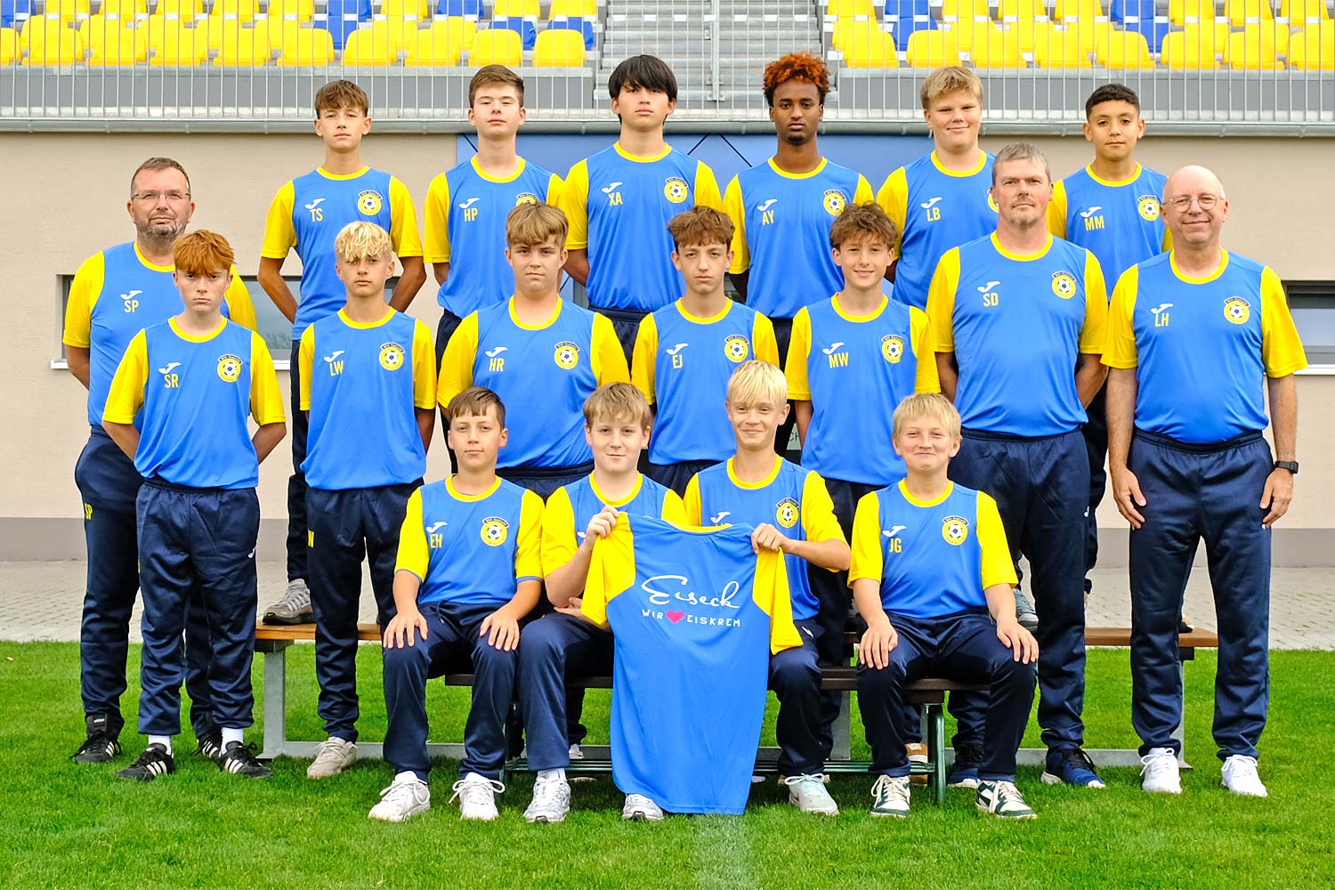 Über coole Aufwärmshirts freuen sich Spieler und Trainer unserer C II-Junioren. Diese machen nun ein einheitliches Auftreten vor den Spielen oder „zweckentfremdet“ in der Freizeit möglich. Herzlich bedanken möchte sich das gesamte Team und der BSV Eintracht Sondershausen beim Eiseck - Wir ♥ Eiskrem.