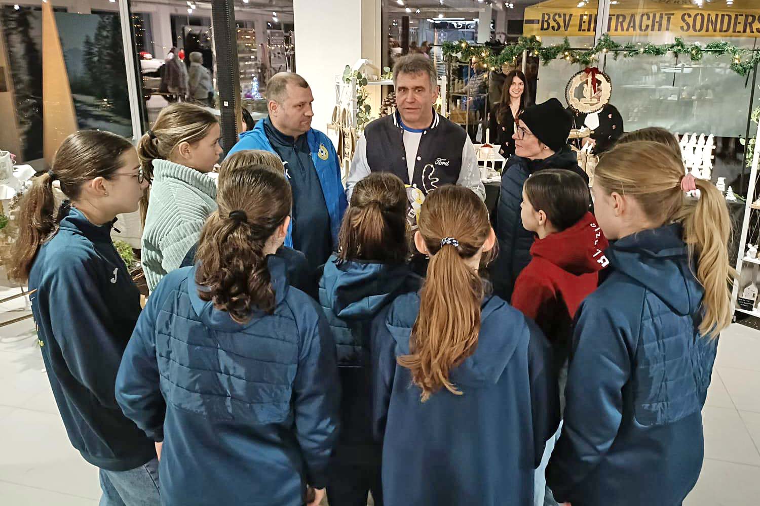 Außerdem wurde zum Weihnachtsmarkt im Ford Autohaus dem Inhaber Frank Schneider ein signierter Ball als Dankeschön für die Unterstützung des Mädchen- und Frauenfußballs der Eintracht übergeben.
