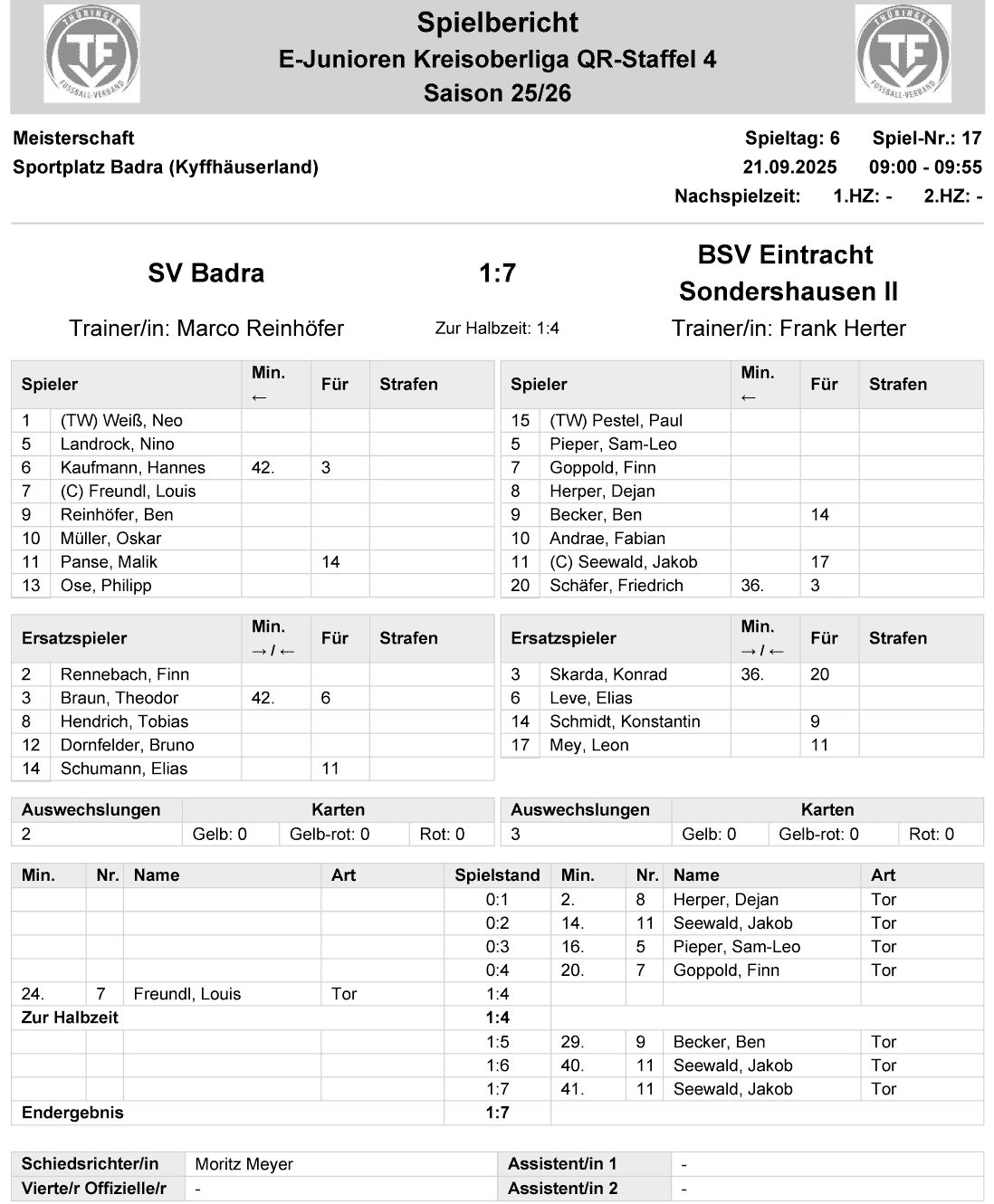 | SV Badra | 1 : 7 | BSV Eintracht Sondershausen II |