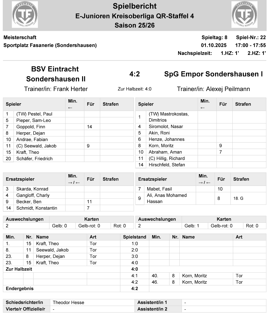 | BSV Eintracht Sondershausen II | 4 : 2 | SpG Empor Sondershausen |