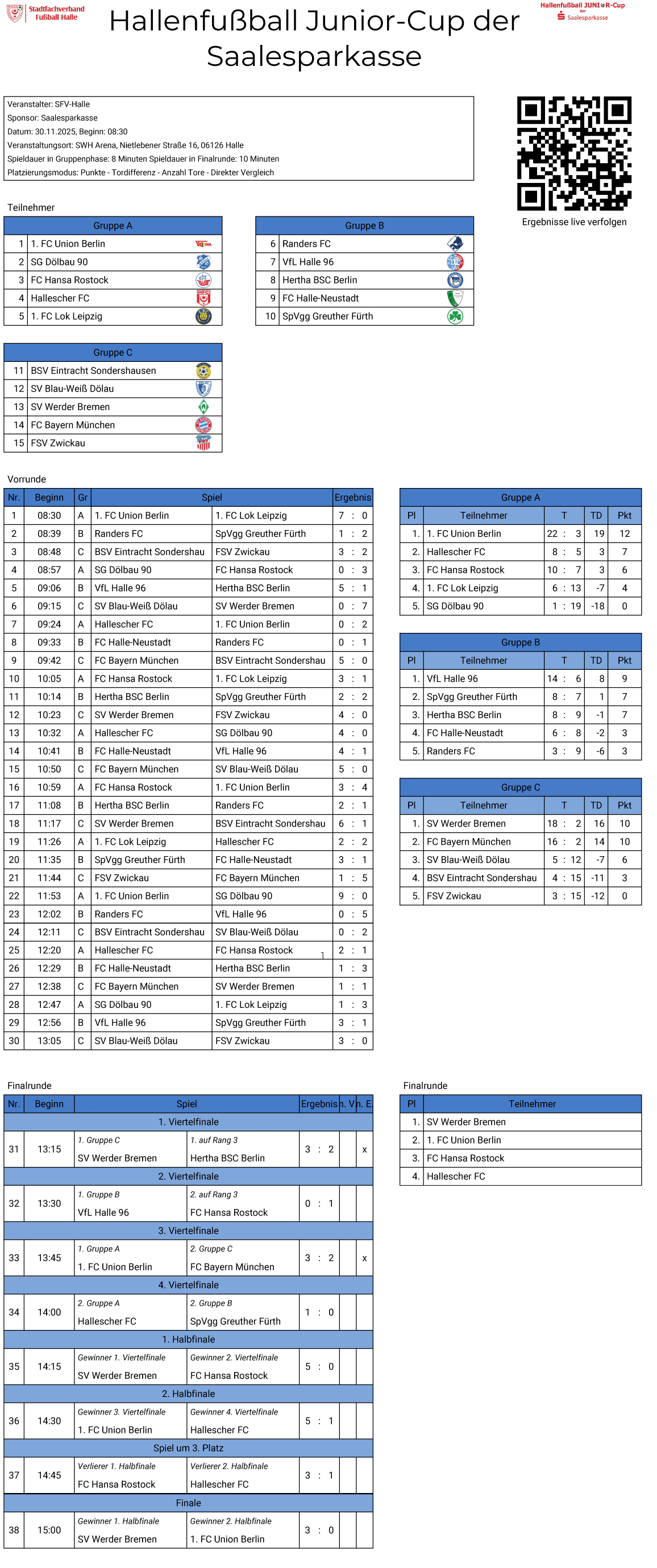 | SV Werder Bremen | BSV Eintracht Sondershausen | 6 : 1 |