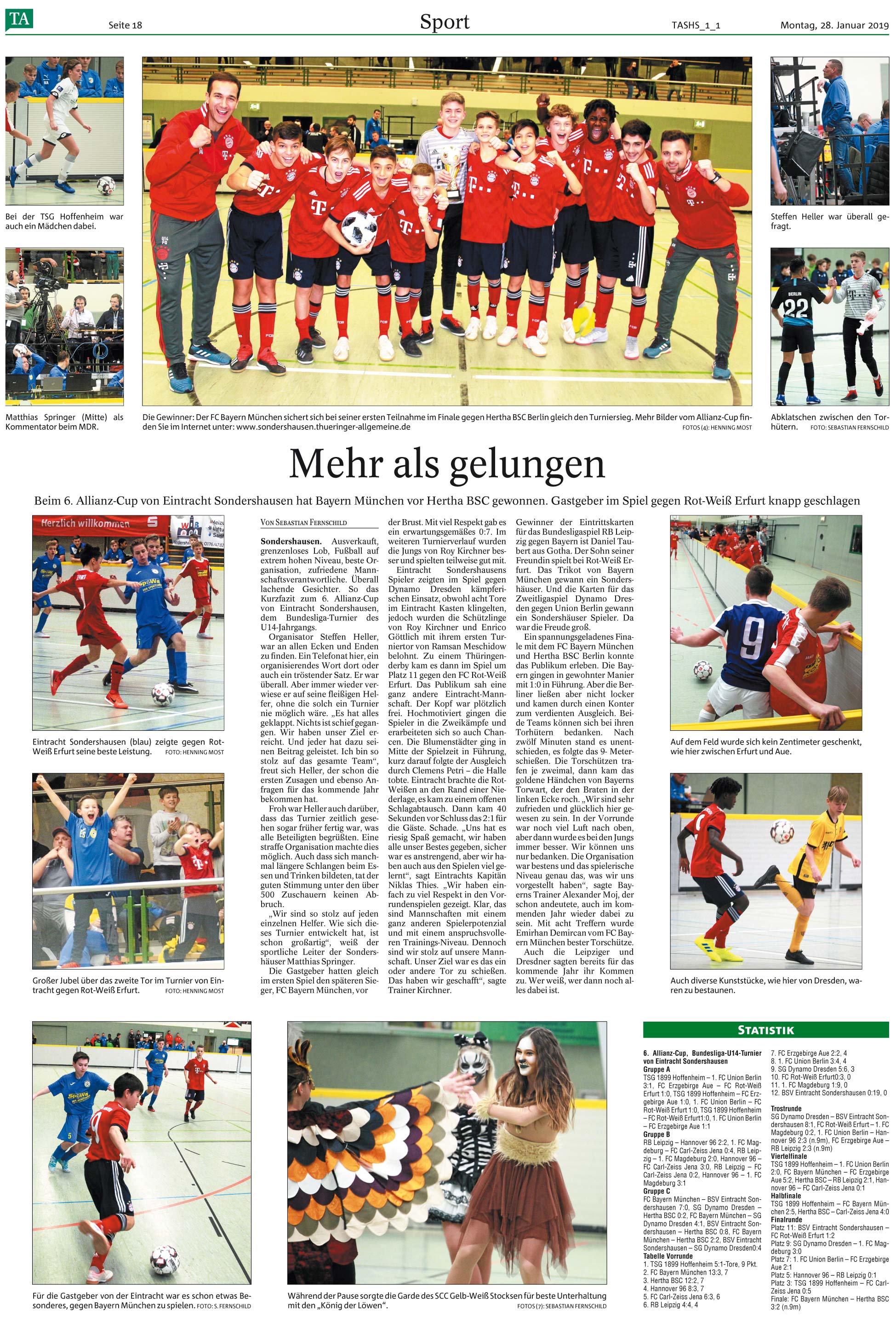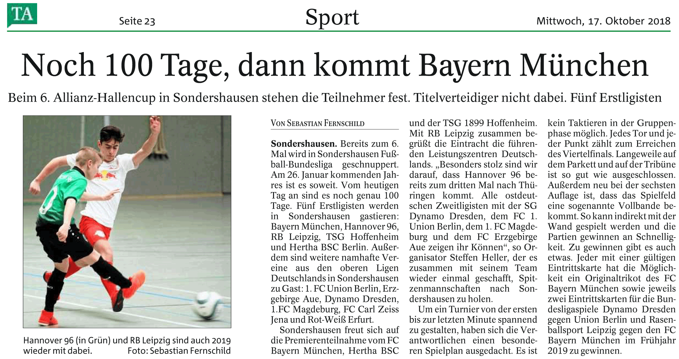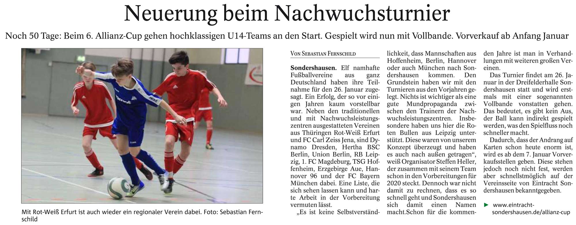 echten Aushängeschild gewordenen Hallenturniers in Sondershausen. Die 6. Auflage des Allianz-Cups in Sondershausen wird am kommenden Samstag über die Bühne