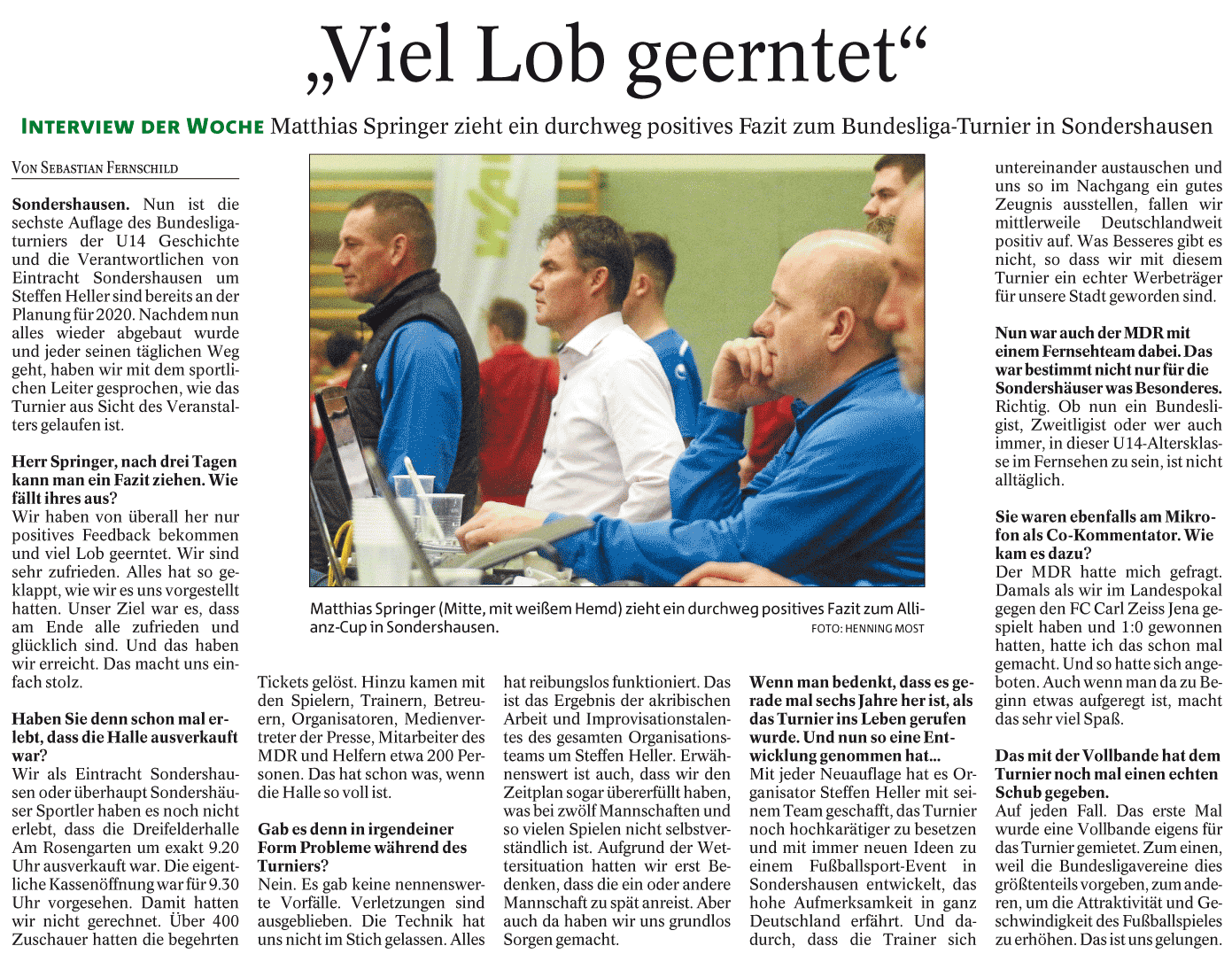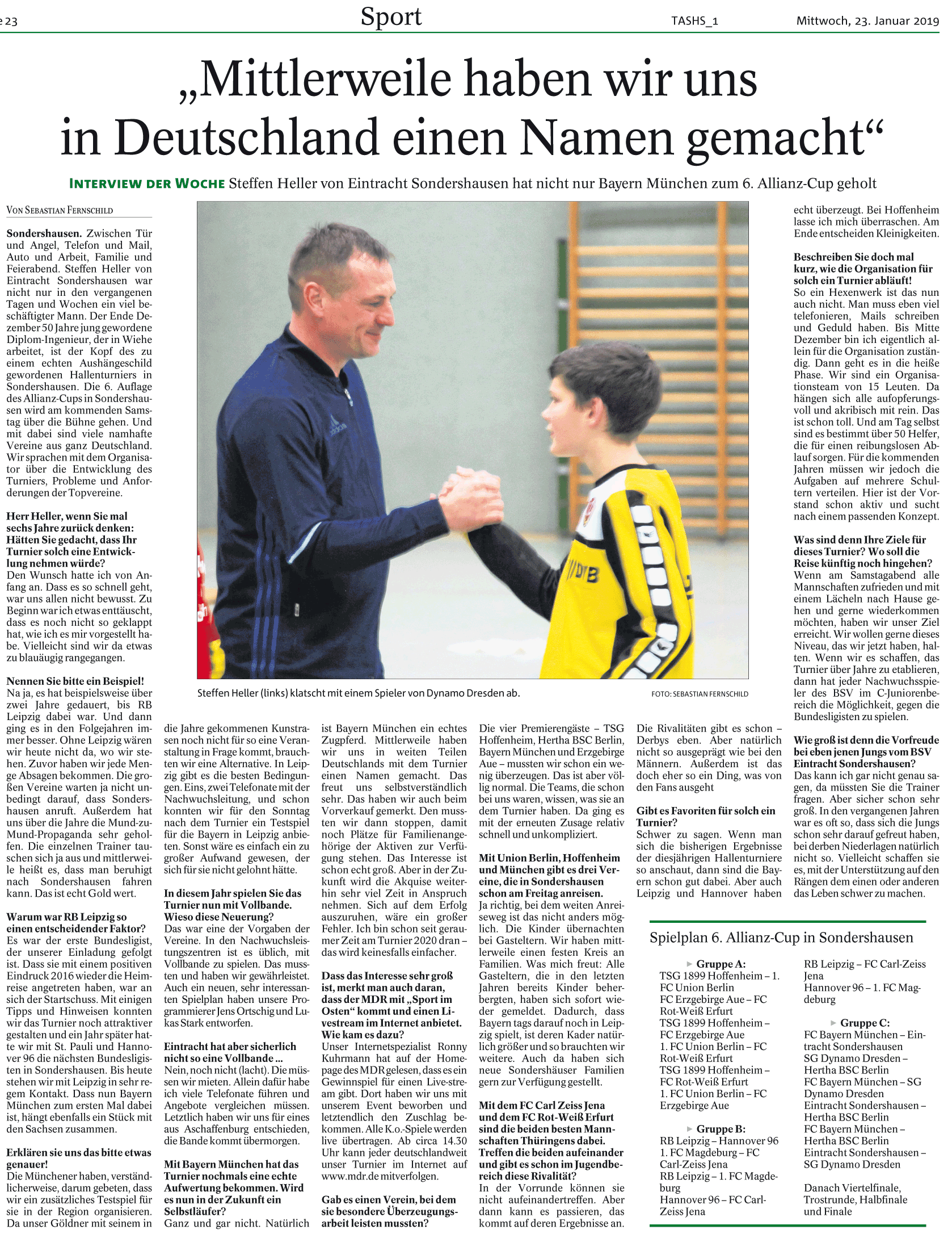 Interview der Woche: Steffen Heller von Eintracht Sondershausen hat nicht nur Bayern München zum 6. Allianz-Cup geholt