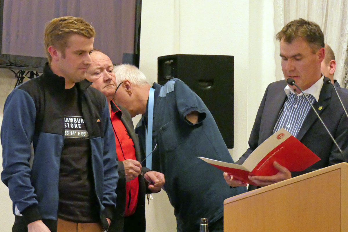 Nach dieser Wahl wurden engagierte Vereinsmitglieder für ihren jahrelangen Einsatz mit der Ehrennadel des TFV in Bronze geehrt: Martin Hohl, Stephan Kluge, Torsten Kraft, Jens Rothe, Kurt Gnad, Roy Kirchner, Andreas Hartung und Jerome Nowak.