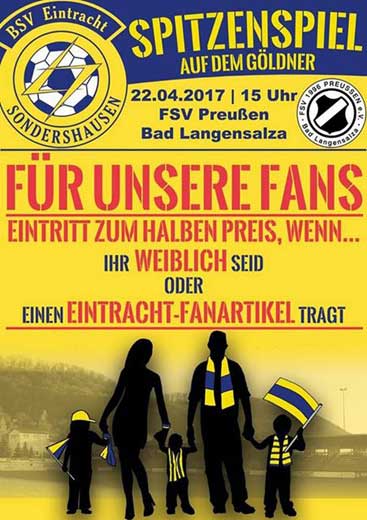 Jeder der mit einem Eintracht-Fanartikel erscheint, wird gegen den FSV nur den halben Eintrittspreis an den Göldnerkassen zu zahlen haben, um diesem Spitzenspiel beiwohnen zu können. Von der zeitlosen Anstecknadel bis hin zum klassischen Fanschal ist dabei alles sehr gerne gesehen.