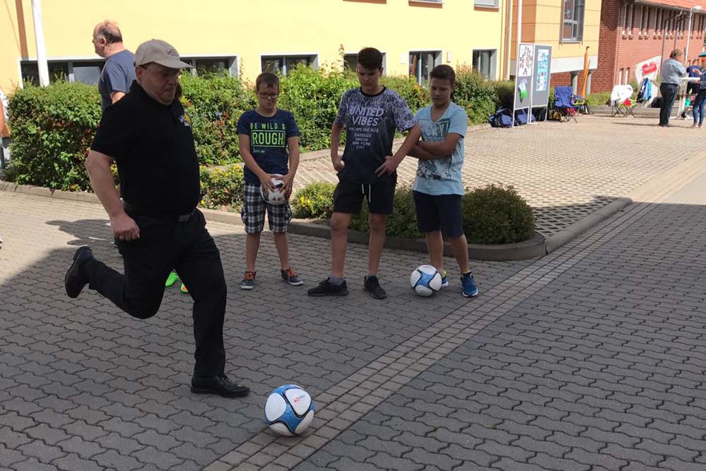 Zur großen Feier anlässlich des 25-jährigem Bestehens der Stadtwerke Sondershausen reihte sich auch unser Verein in die Schar der Gratulanten ein und bedankte sich beim Geschäftsführer Hans-Christoph Schmidt für die jahrelange Unterstützung. Er selbst lies es sich im Anschluss nicht nehmen unsere Torschuss-Geschwindigkeitsmessung zu testen und glänzte mit einem Knaller von 77 km/h.
