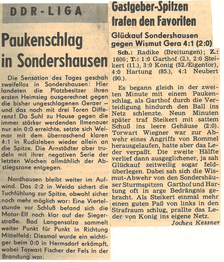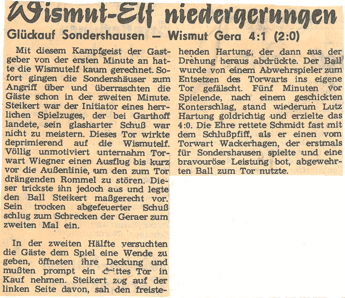 "Paukenschlag in Sondershausen, Wismut-Elf niedergerungen"