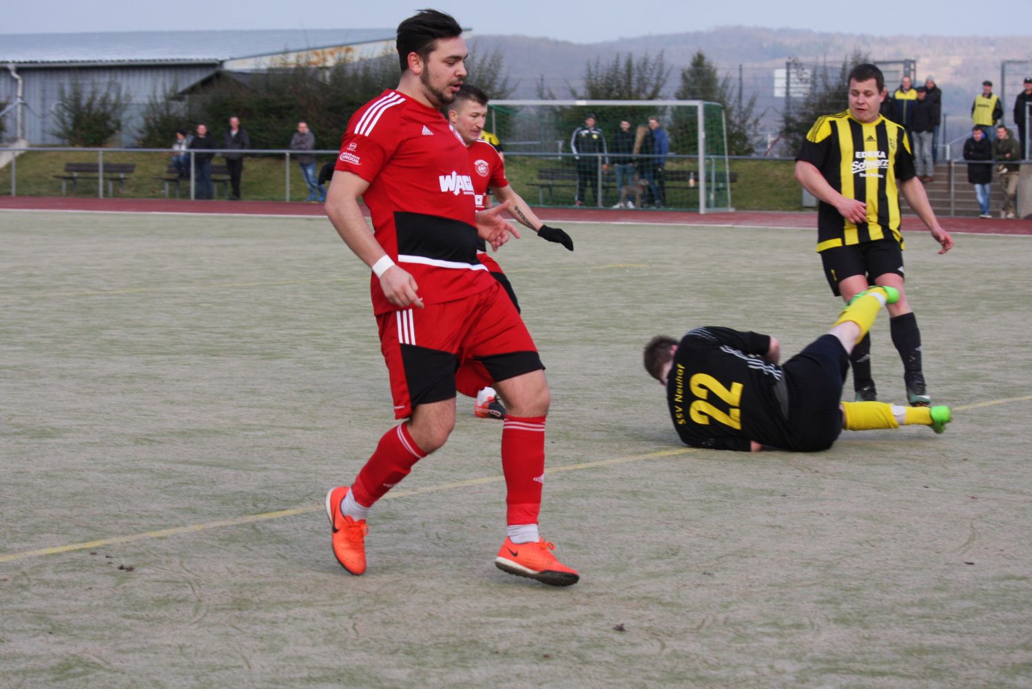 Das erste Testspiel auf dem Kunstrasenplatz des Sondershäuser Göldners begann mit einer turbulenten Anfangsphase. In der 7. Minute ging unsere Eintracht durch einen Schuss von Eric Nowak ins lange Eck mit 1:0 in Führung. Nur 4 Minuten später glichen unsere Gäste aus Niedersachsen aus. Ein 20m Schuss aus der Drehung war für Moritz Böse unhaltbar. In der 13. Minute gelang unseren Gästen sogar die Führung, wobei unsere Tormaschine Milos Gibala mit einem Kopfballtor die direkte Antwort zum 2:2 gab.