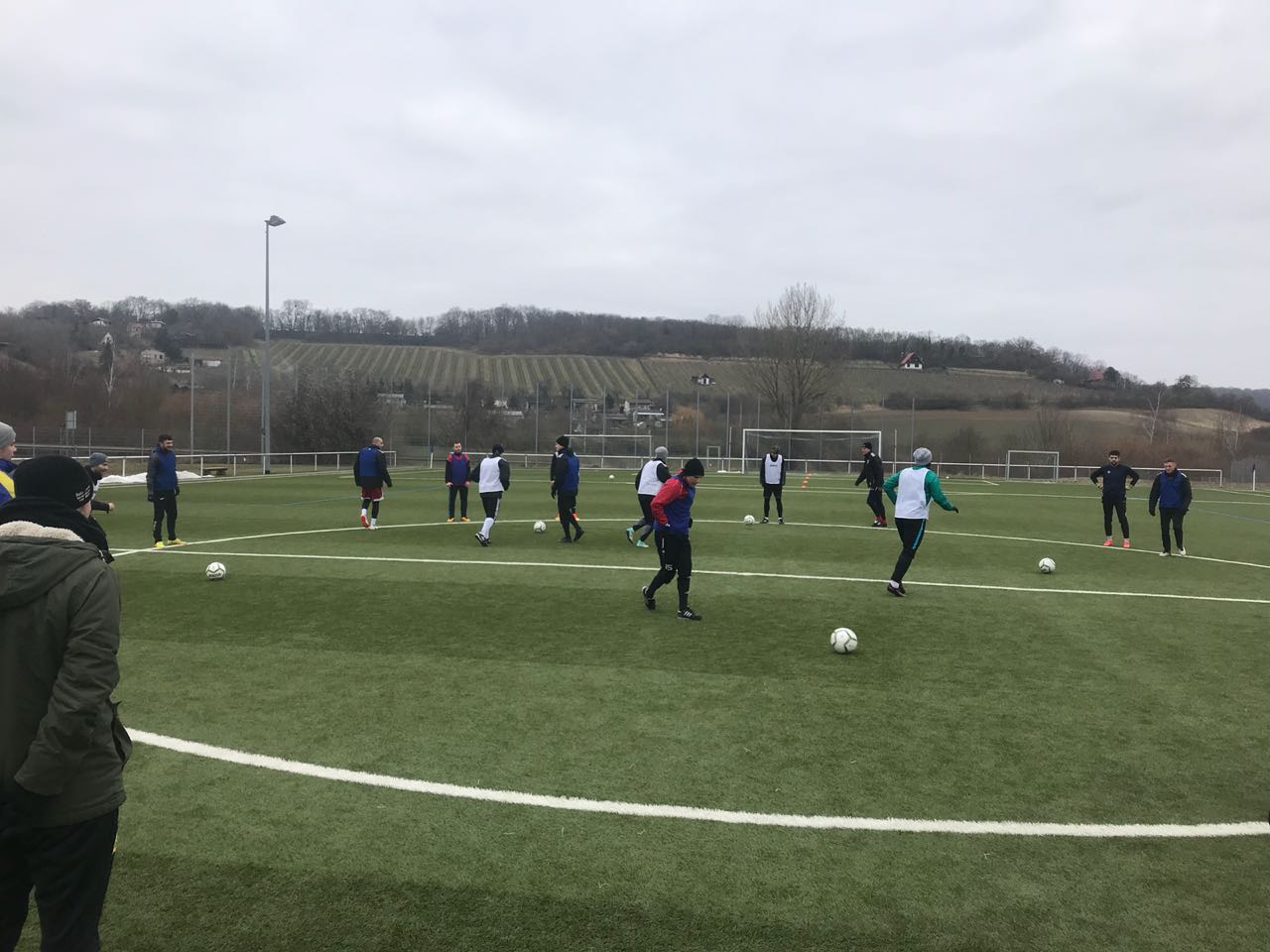 Wir waren von Freitag bis Sonntag in Naumburg untergebracht und haben in Freyburg beim dort ansässigen FC RSK Freyburg trainiert. Wir haben den Kunstrasenplatz zur Verfügung gestellt bekommen. Vielen Dank auch noch mal für die Unterstützung.