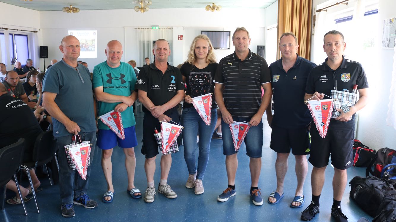 Unser Schiedsrichterobmann Torsten Weise feierte kürzlich ein besonderes Jubiläum – 25 Jahre aktiv für die Unparteiischen. Zur Saisoneröffnung des Kreisfußballausschuss Nordthüringen (NTKFA) wurde er für sein großes Engagement durch den Vorsitzenden des Schiedsrichterausschusses Thomas Gottwald (rechts im Bild) anfang Juli auf dem Sondershäuser Göldner geehrt.