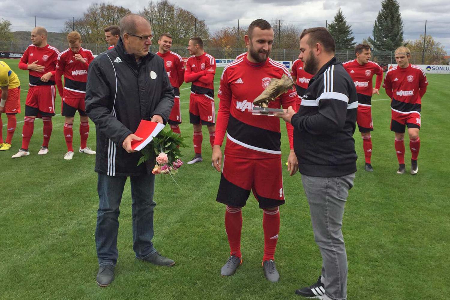 Vor dem Heimspiel unserer I. Mannschaft am vergangenen Samstag auf dem „Göldner“ wurden durch den TFV mit Unterstützung seiner Partner adidas und 11teamsports Ehrungen zur vergangenen Landesklasse-Saison vorgenommen.