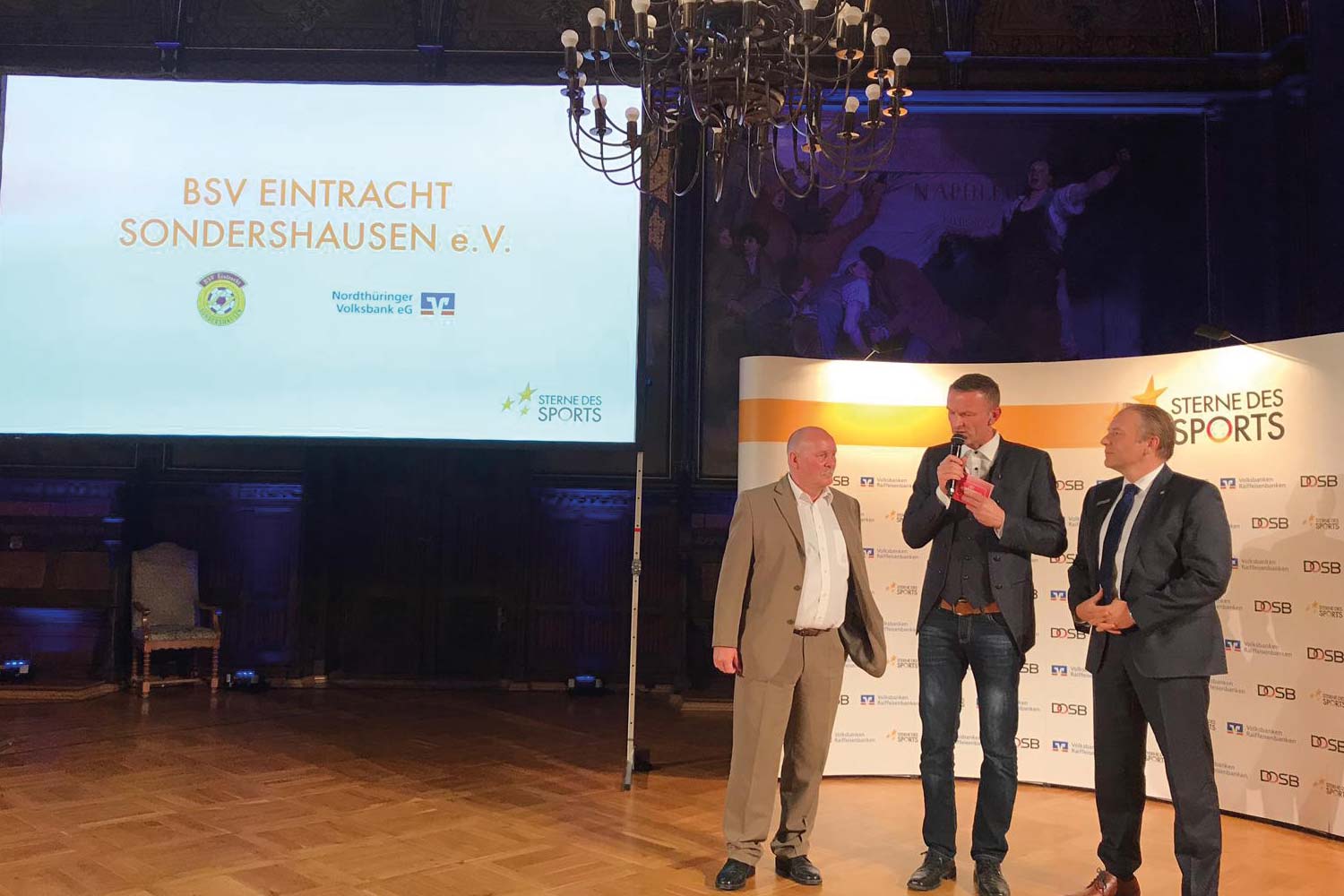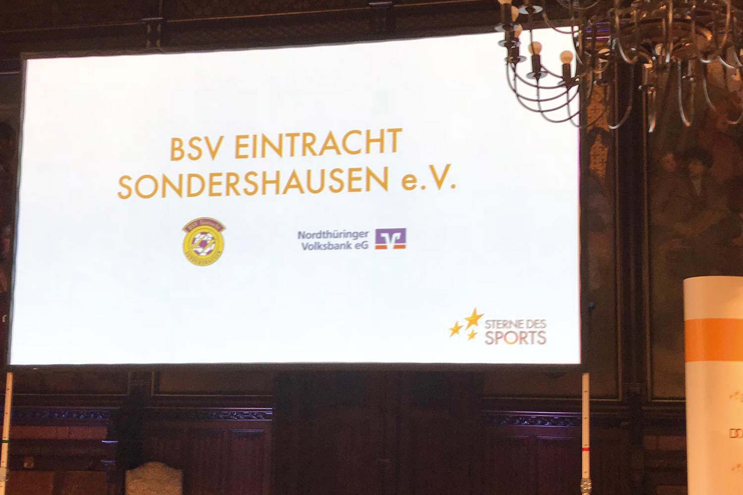 Bei der gestrigen Preisverleihung in Erfurt fieberten wir mit fünf anderen Vereinen aus Thüringen und den Vertretern unserer Nordthüringer Volksbank - Hr. Andreas Böcke, Frau Kristin Bergemann, Frau Susann Westphal und Frau Katrin Westphal - der Siegerehrung des silbernen Sterns des Sports entgegen.