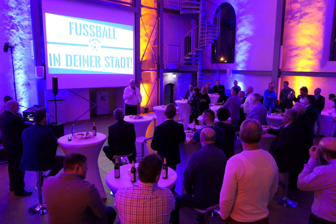 Als Dank für die Unterstützung der vergangenen Zeit wollte dies unser Verein nicht missen müssen. Als Lokalität wurde hierfür das seit einiger Zeit eindrucksvoll, neugestaltete Bürgerzentrum Cruciskirche gewählt, welches sich an diesem Abend einen blau-gelben Frack überwarf.