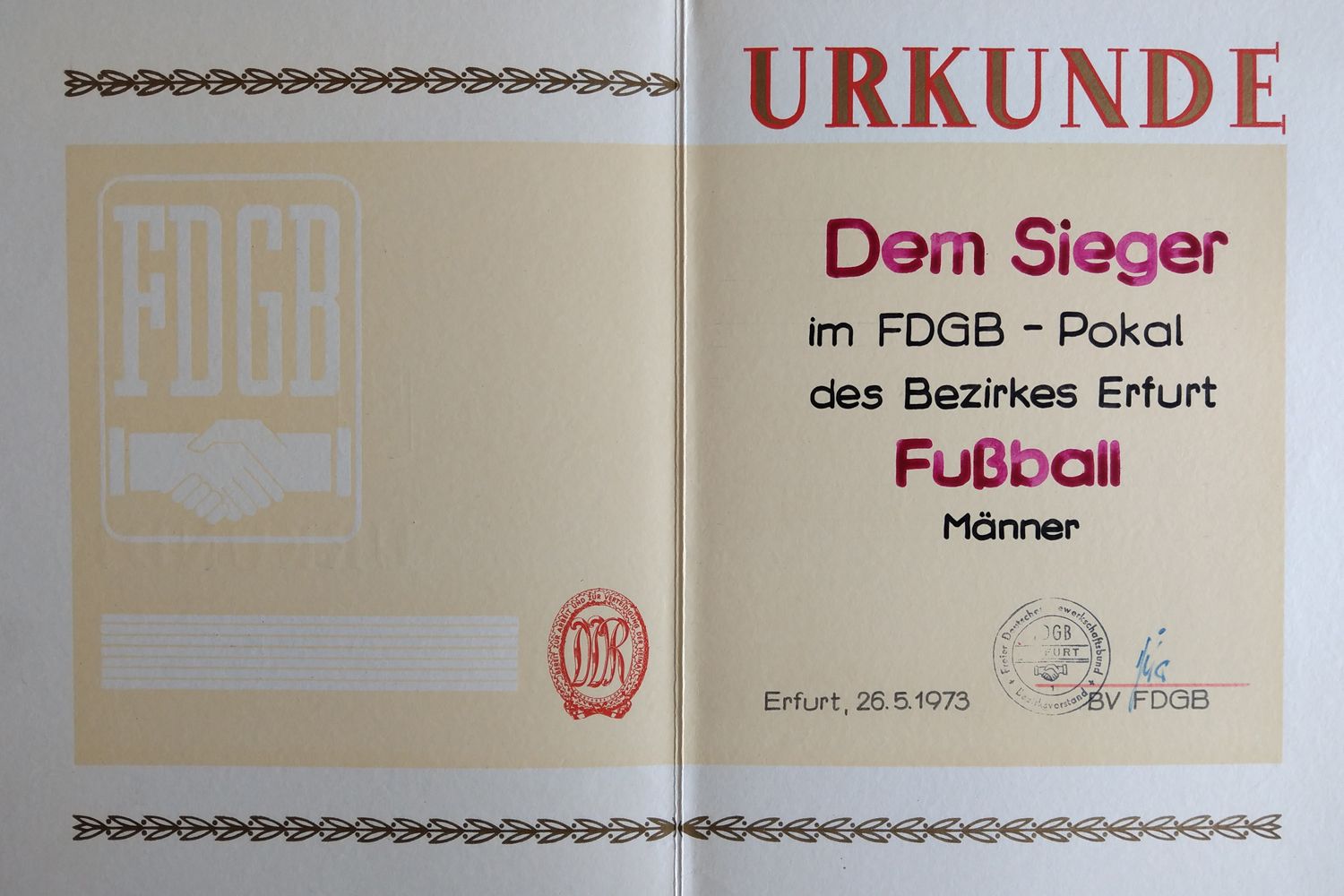 Beginnen wir mit dem Aufstieg in die DDR Liga nach der Saison 1979/80 in der Bezirksliga Erfurt. Die BSG Glückauf Sondershausen war 1971 in die Bezirksliga aufgestiegen (damals die dritthöchste Spielklasse der DDR) Seiner Zeit hatte man es mit Gegnern wie Motor Gotha, Motor Nord Erfurt, Motor Rudisleben, Landbau Bad Langensalza oder der Fortschritt Leinefelde zu tun, alles namhafte und starke Gegner, die zum Teil bereits DDR Liga gespielt hatten. Größter Erfolg in den Anfangsjahren nach dem Aufstieg war der Gewinn des Bezirkspokals in der Saison 1972/73.