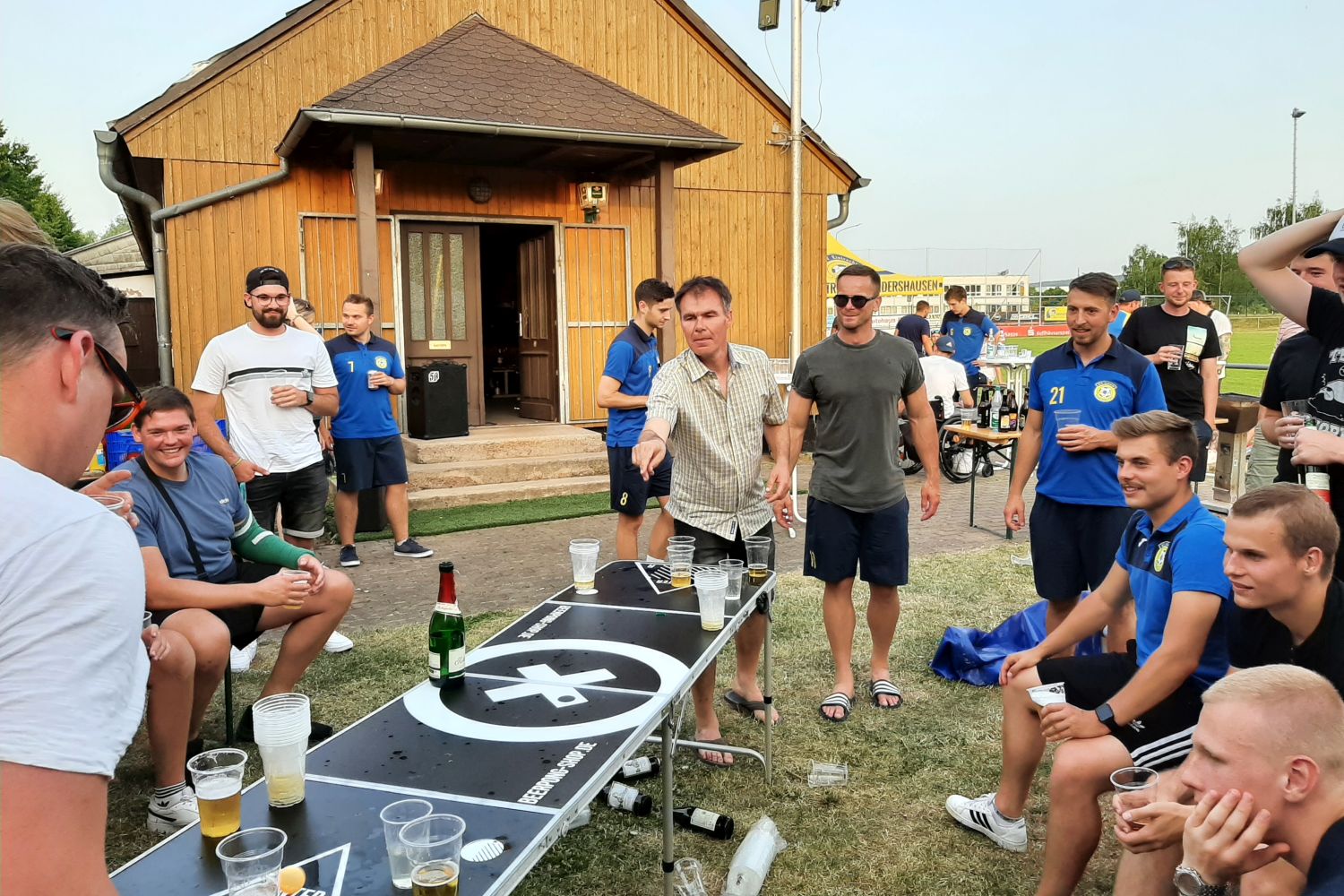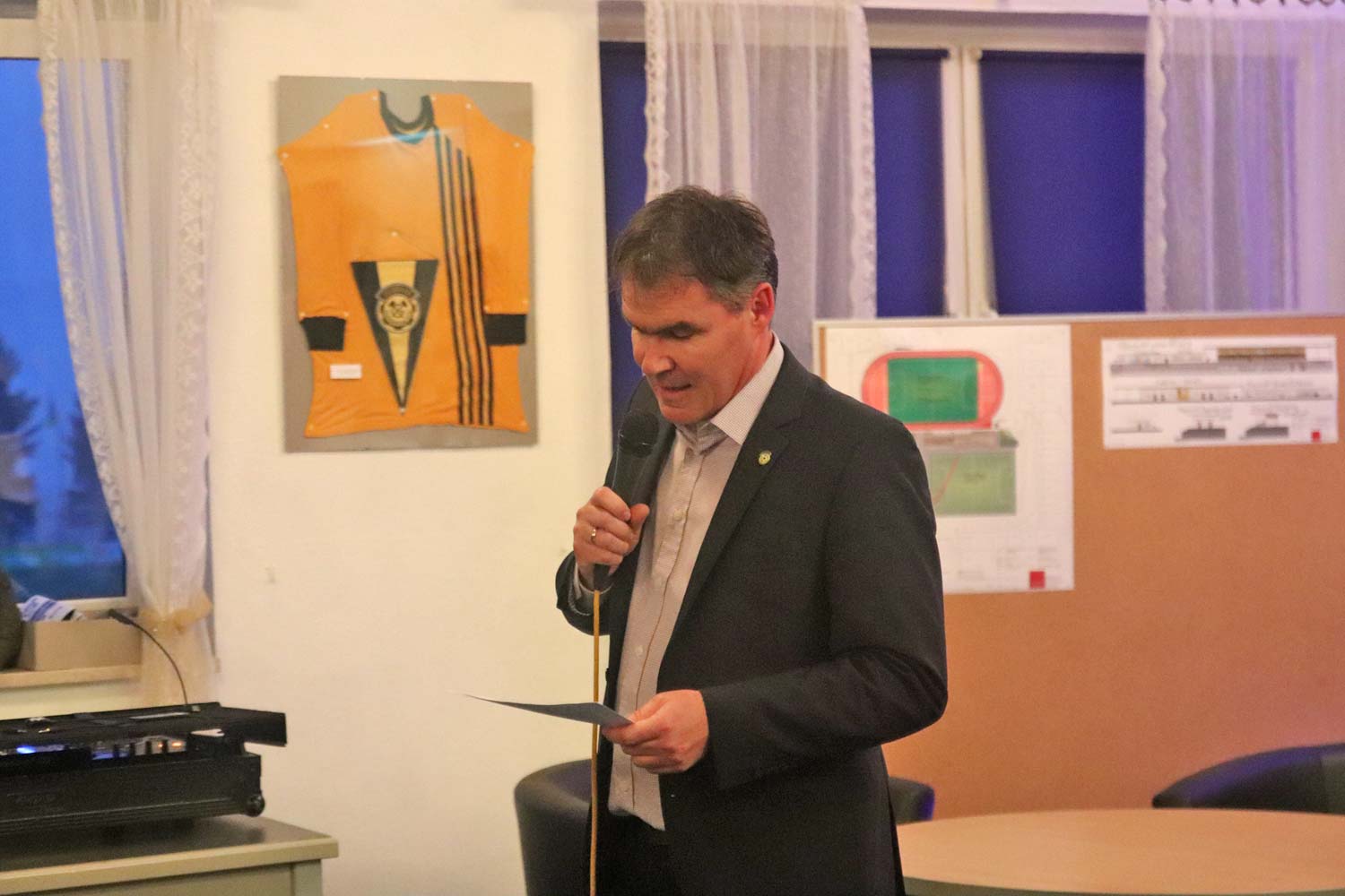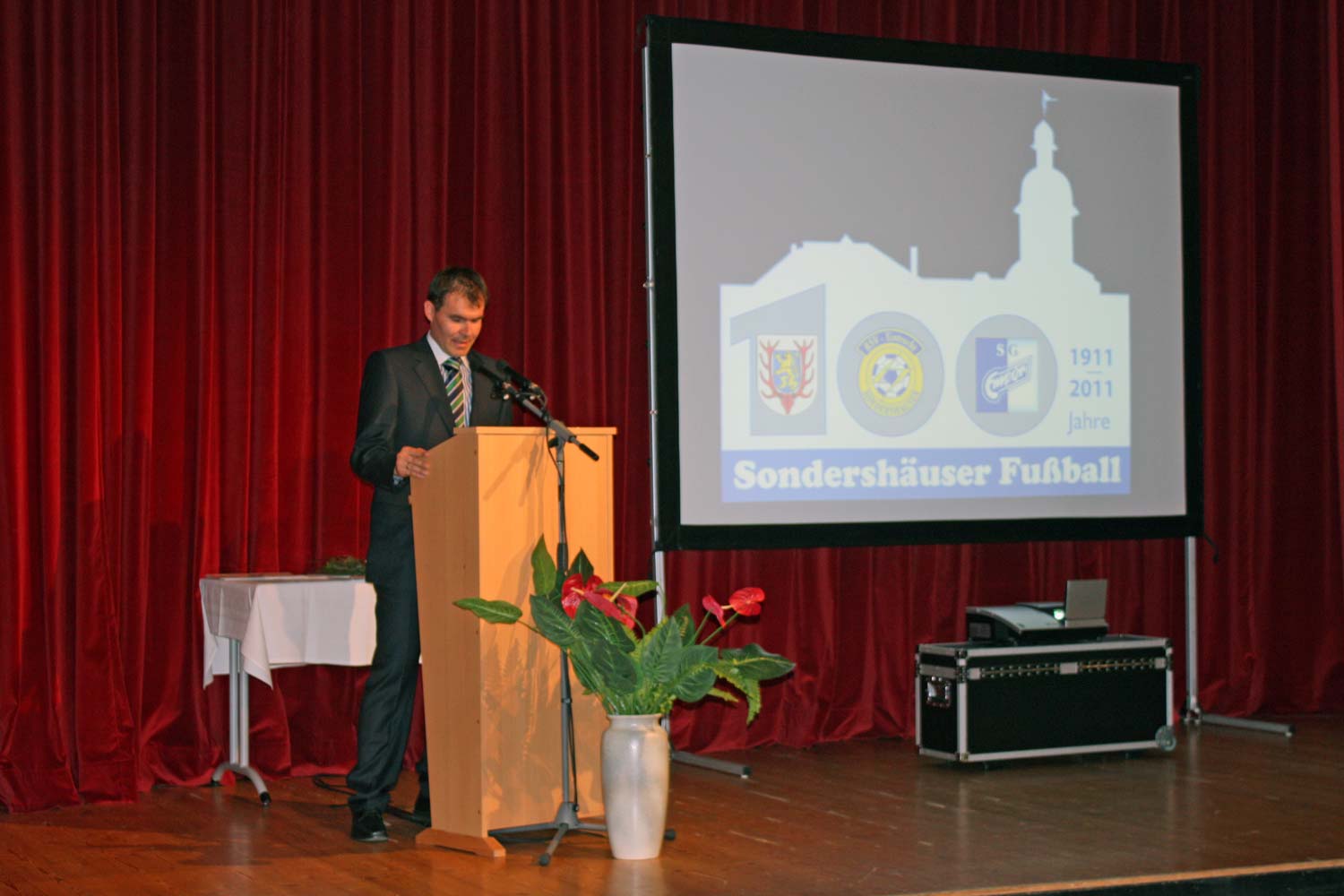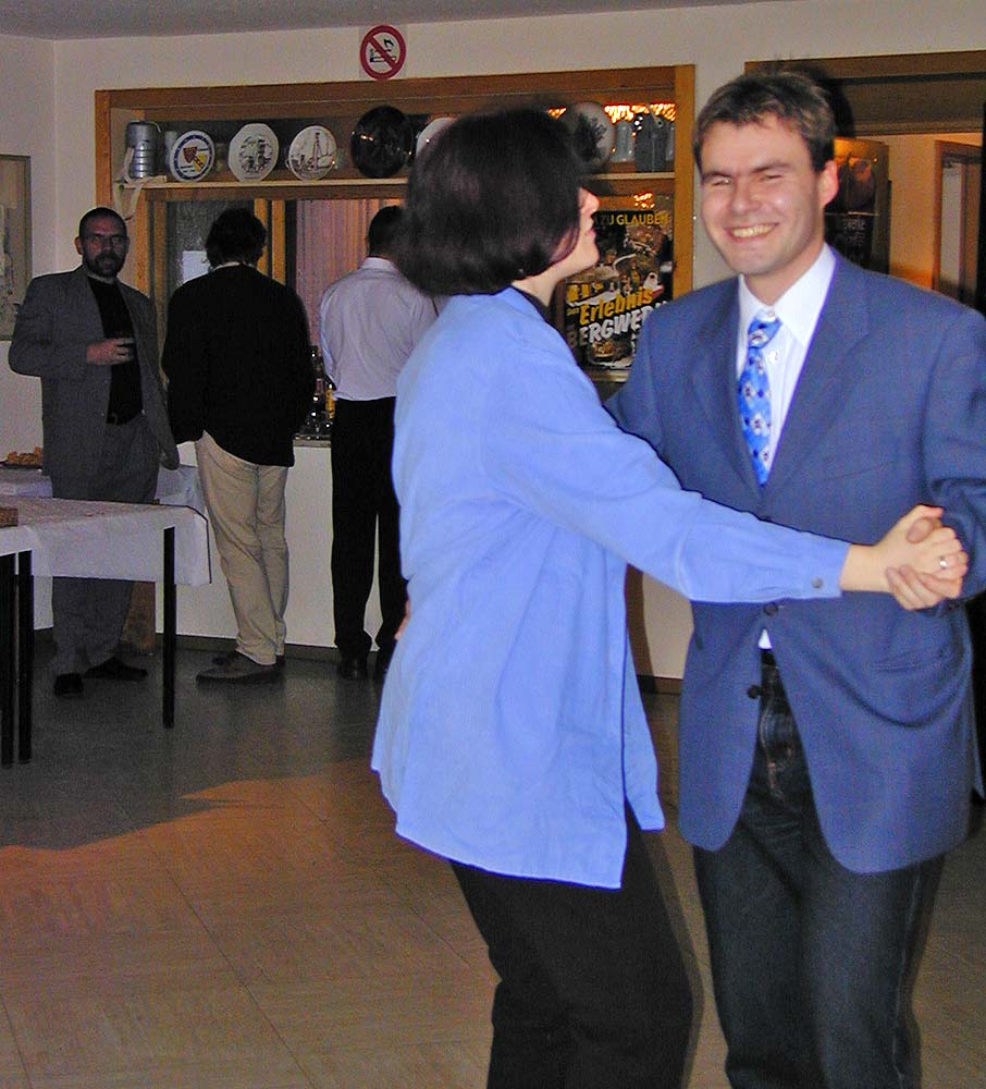 Wir sprechen unser Hochachtung aus, wie er diese Mehrfachbelastung durch Beruf, Familie und Verein meistert. Immerhin pendelt er seit Jahren nahezu täglich zur Arbeit nach Erfurt und zurück. Am Wochenende ist er dann meist zu Spielen unserer Teams auf dem Sportplatz und spielt natürlich zuverlässig wie eh und je aktiv für unsere Alten Herren. Auch seine Verpflichtungen bei öffentlichen Auftritten und speziell den „Vereinsfeierlichkeiten“ nimmt er sehr ernst! Für etwas mehr Entlastung durch den Verein wären er und seine Familie sicher sehr dankbar.