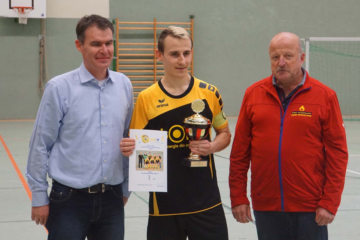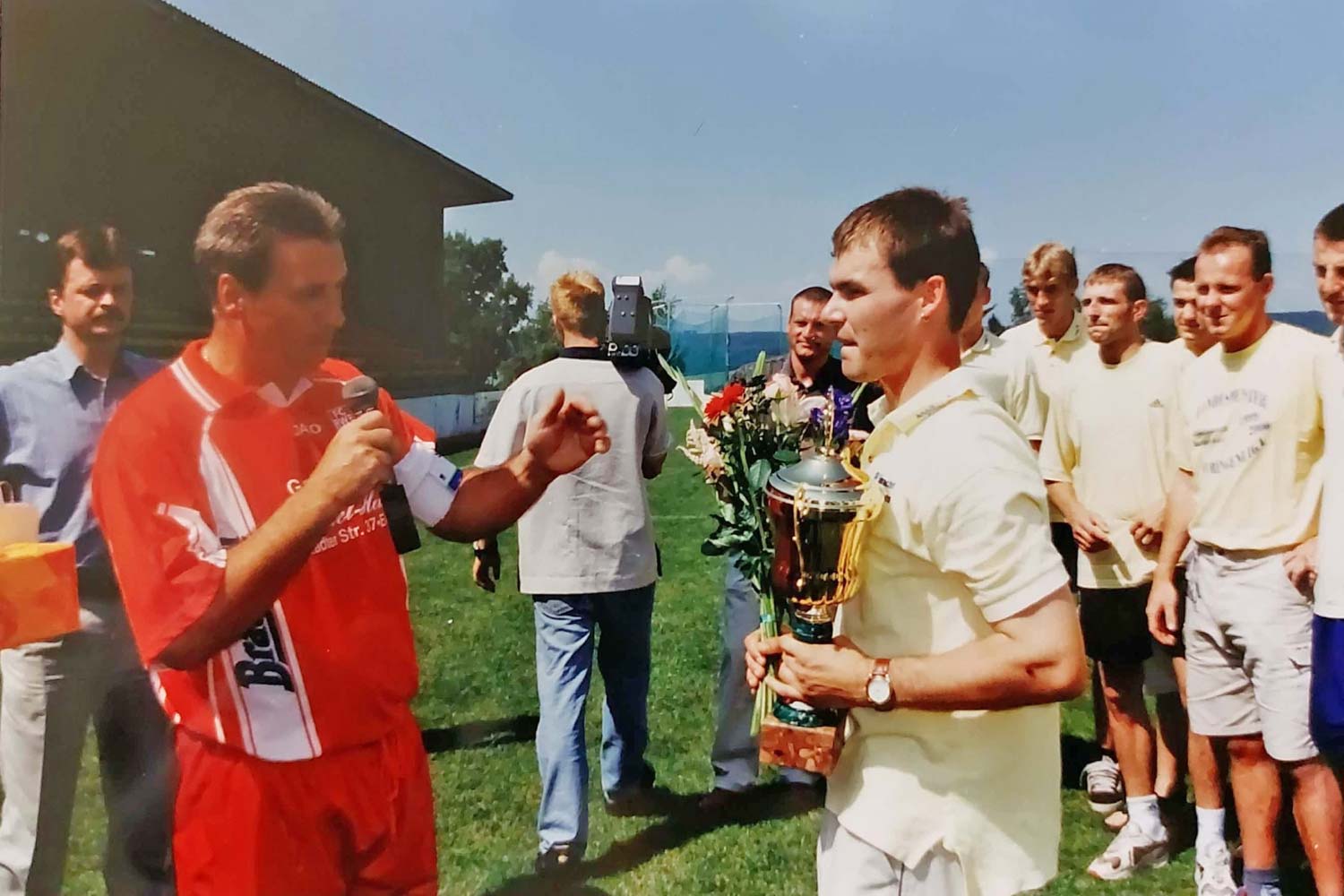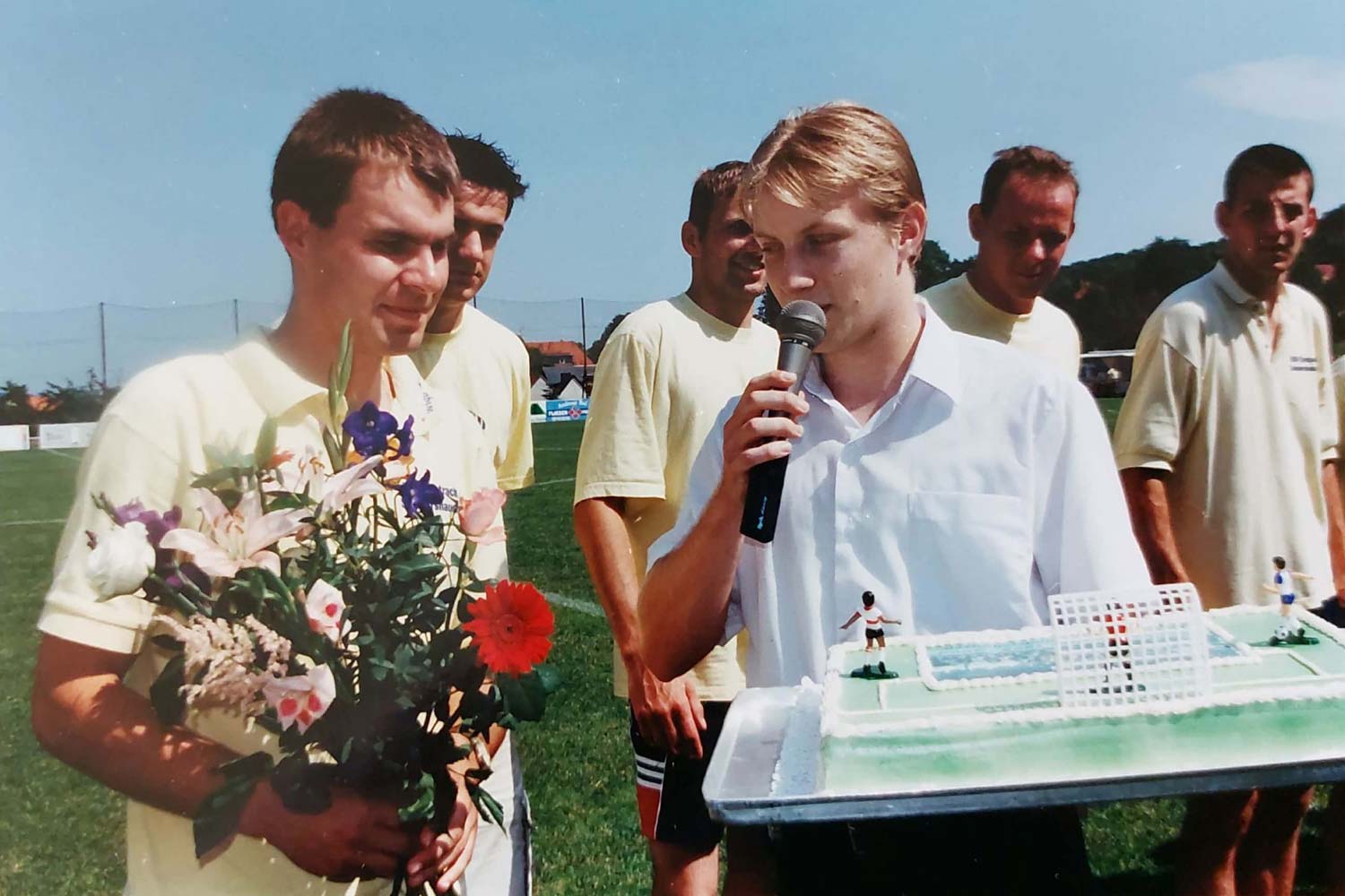 Wir sprechen unser Hochachtung aus, wie er diese Mehrfachbelastung durch Beruf, Familie und Verein meistert. Immerhin pendelt er seit Jahren nahezu täglich zur Arbeit nach Erfurt und zurück. Am Wochenende ist er dann meist zu Spielen unserer Teams auf dem Sportplatz und spielt natürlich zuverlässig wie eh und je aktiv für unsere Alten Herren. Auch seine Verpflichtungen bei öffentlichen Auftritten und speziell den „Vereinsfeierlichkeiten“ nimmt er sehr ernst! Für etwas mehr Entlastung durch den Verein wären er und seine Familie sicher sehr dankbar.