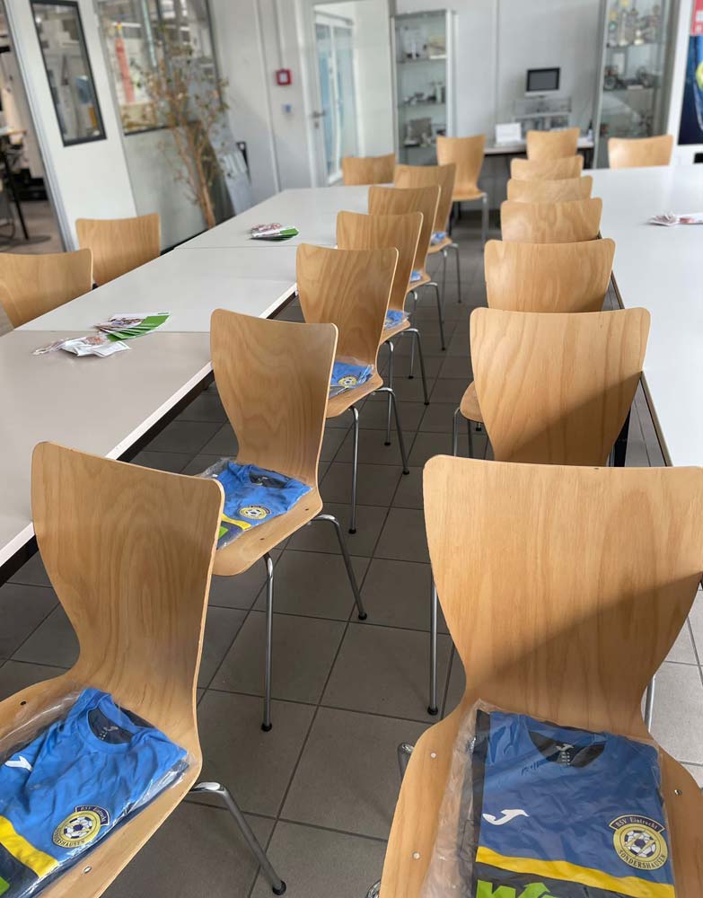 Zum krönenden Abschluss gab es noch eine Überraschung. So übergab Herr Matzschke der gesamten Mannschaft einen neuen Satz Trainingsshirts. Die ganze Mannschaft bedankt sich für die Möglichkeit des Besuches und freut sich nun, bestens ausgerüstet, in die restliche Spielzeit zu gehen!