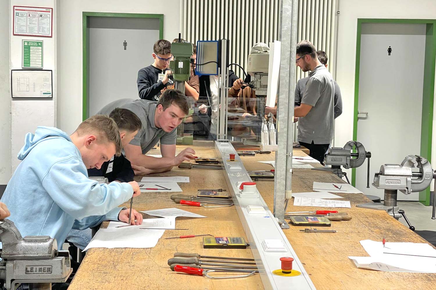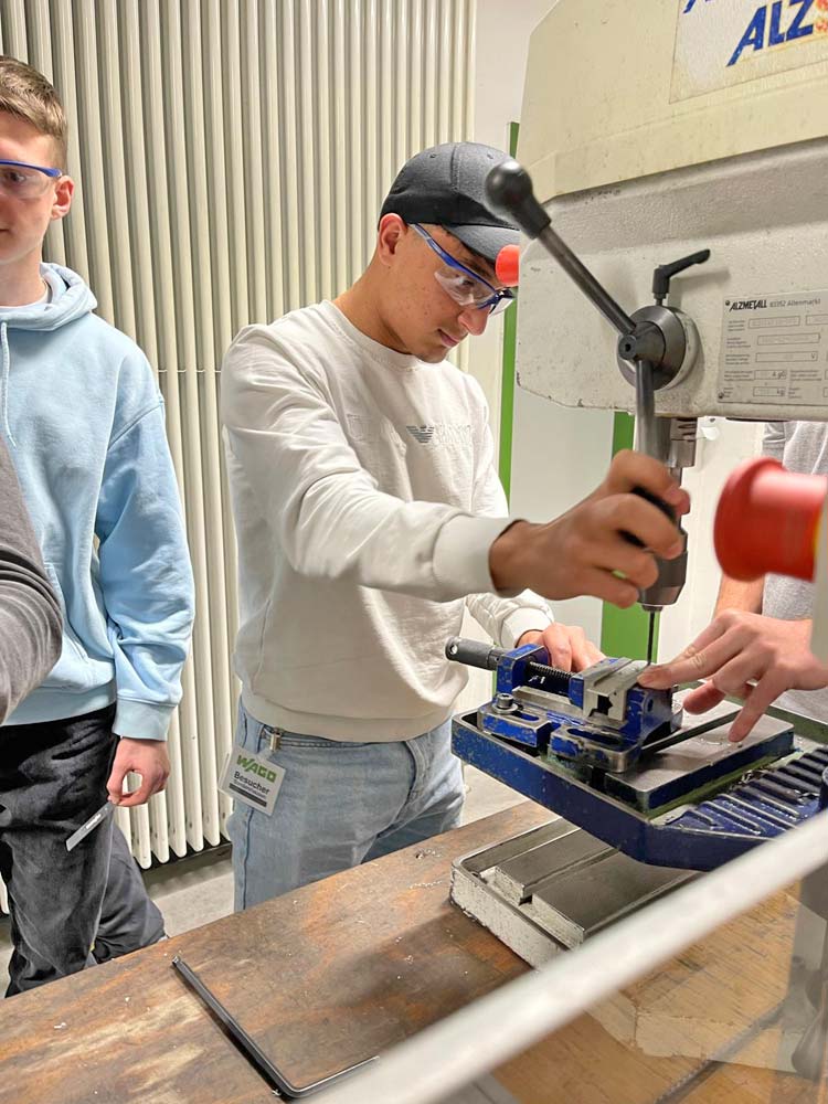 Am vergangenen Donnerstag waren unsere B-Junioren der Einladung vom Hauptsponsor WAGO gefolgt und besichtigten dabei die Lehrwerkstatt in Sondershausen. Nach einer kurzen Präsentation der Firma und der Lehrberufe durch den Ausbildungsleiter Marcel Matzschke konnten die Jungs ihre handwerklichen Fähigkeiten testen und einen Flaschenöffner selbst herstellen. Dabei konnten sie auch Eindrücke gewinnen, welche Lehrinhalte in der Ausbildung bei WAGO, auf die man sich noch für das Ausbildungsjahr 2024 bewerben kann, vermittelt werden.