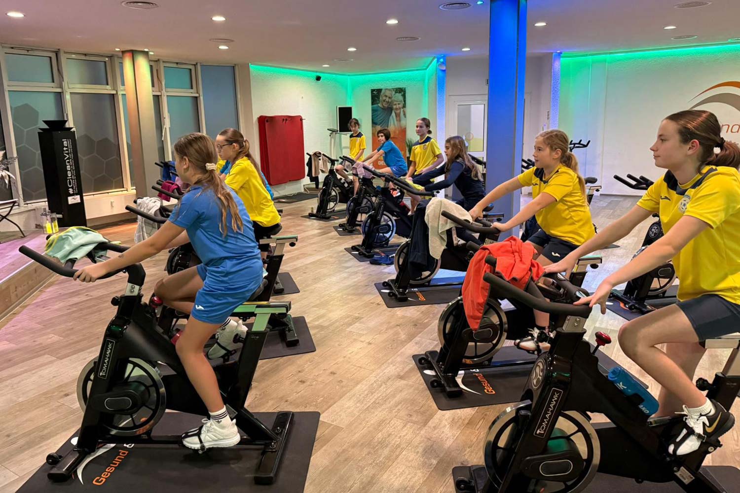 In der vergangenen Woche war unsere Mädchen-Mannschaft ins Sondershäuser Fitnessstudio Gesund & Vital eingeladen. Dort wurde mit ihnen unter Anleitung und Motivation ein energiegeladenes Training auf den Bikes absolviert. Die Mädels haben richtig Vollgas gegeben und dabei viel Power und Teamgeist gezeigt! Ein Abend voller Motivation, Spaß und Energie!