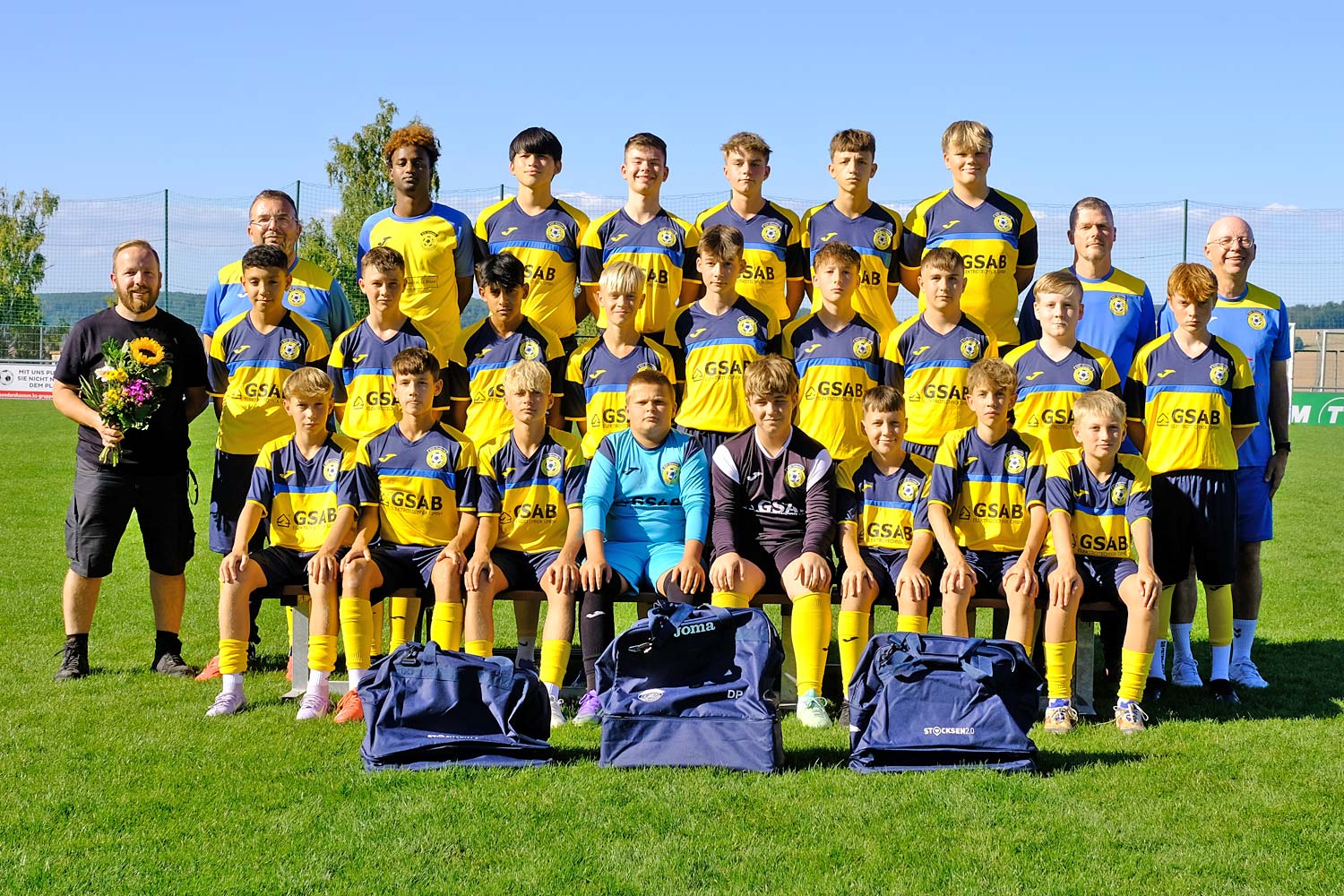 Ihre Spielkleidung, Schuhe und alles weitere, was zum Training oder Spiel benötigt wird, können unsere Junioren ab sofort in super praktische Sporttaschen unterbringen. Möglich machte das Fabian Fromm (rechts im Bild), Gesellschafter der Sondershäuser Event + Livelocation STOCKSEN 2.0. Durch seine großzügige Nachwuchsförderung erhielt jeder Spieler solch eine coole Tasche.