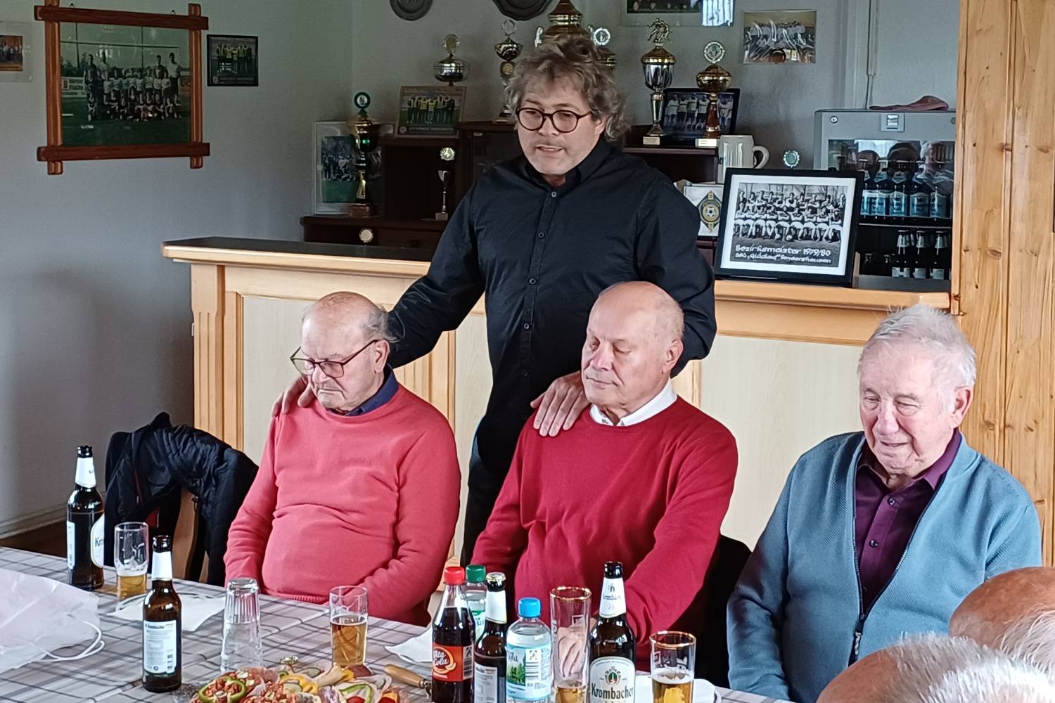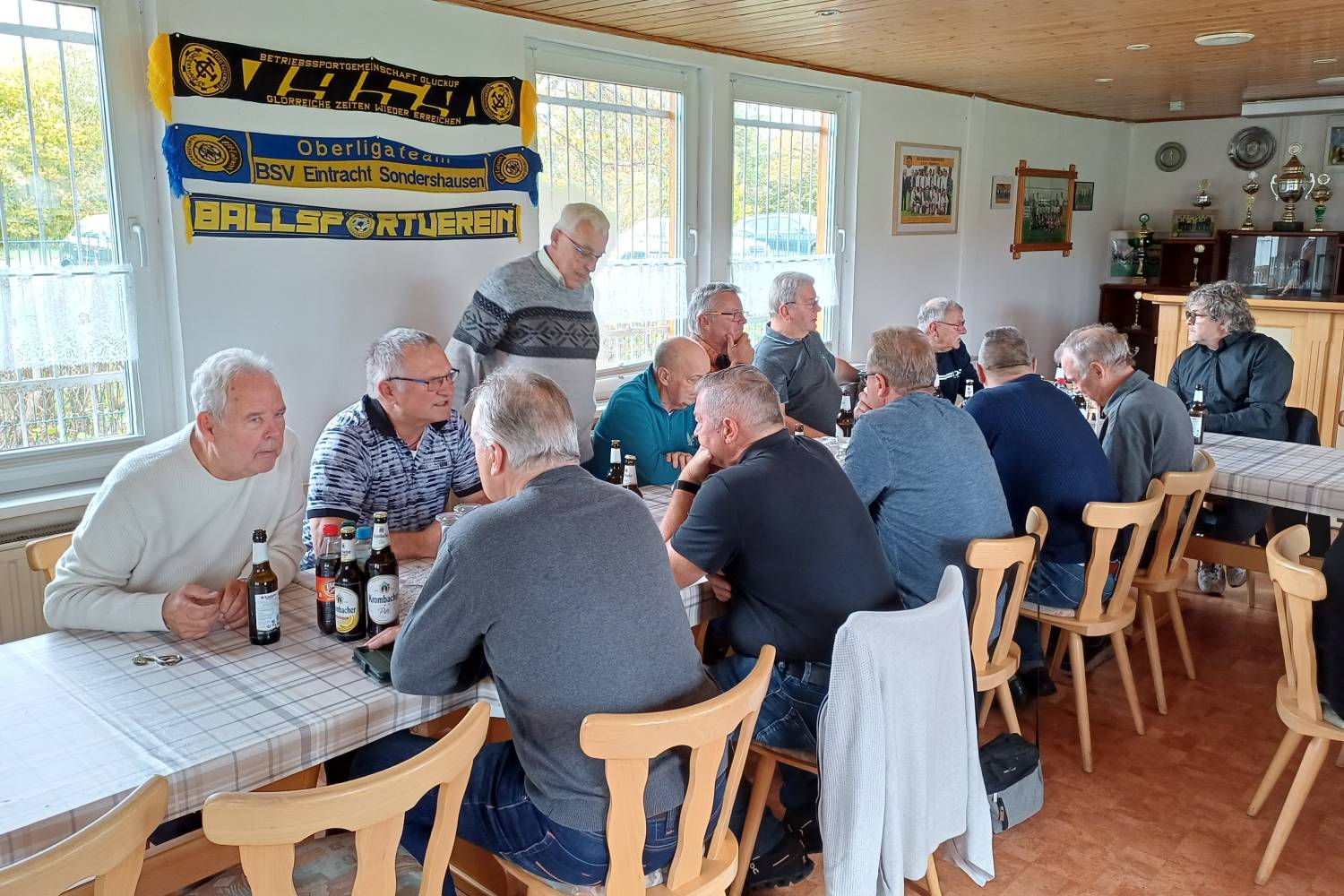 Am vergangenen Freitag, dem 24. Oktober trafen sich auf Einladung der Sportfreunde Günter Meklenburg, Alfred Duft und Klaus Zwicker unsere ehemaligen Spieler zum jährlichen Treffen im Vereinsraum in Jecha. Insgesamt 26 Sportfreunde waren der Einladung gefolgt. Sie alle waren für unsere Vorgänger Glückauf , Motor oder Aktivist als Fußballer aktiv gewesen und haben Jahrzehnte des Sondershäuser Fußballs mitgeprägt. Ältester Teilnehmer mit 89 Jahren war Sportfreund Heinz Rießland. Erstmals dabei war unser ehemaliger DDR Liga Spieler Axel Vollroth. Er bedankte sich noch einmal herzlich für die Einladung und betonte, dass ein Treffen von ehemaligen Fußballern in heutiger Zeit absolut selten sei und wichtig für die Tradition unseres BSV Eintracht.