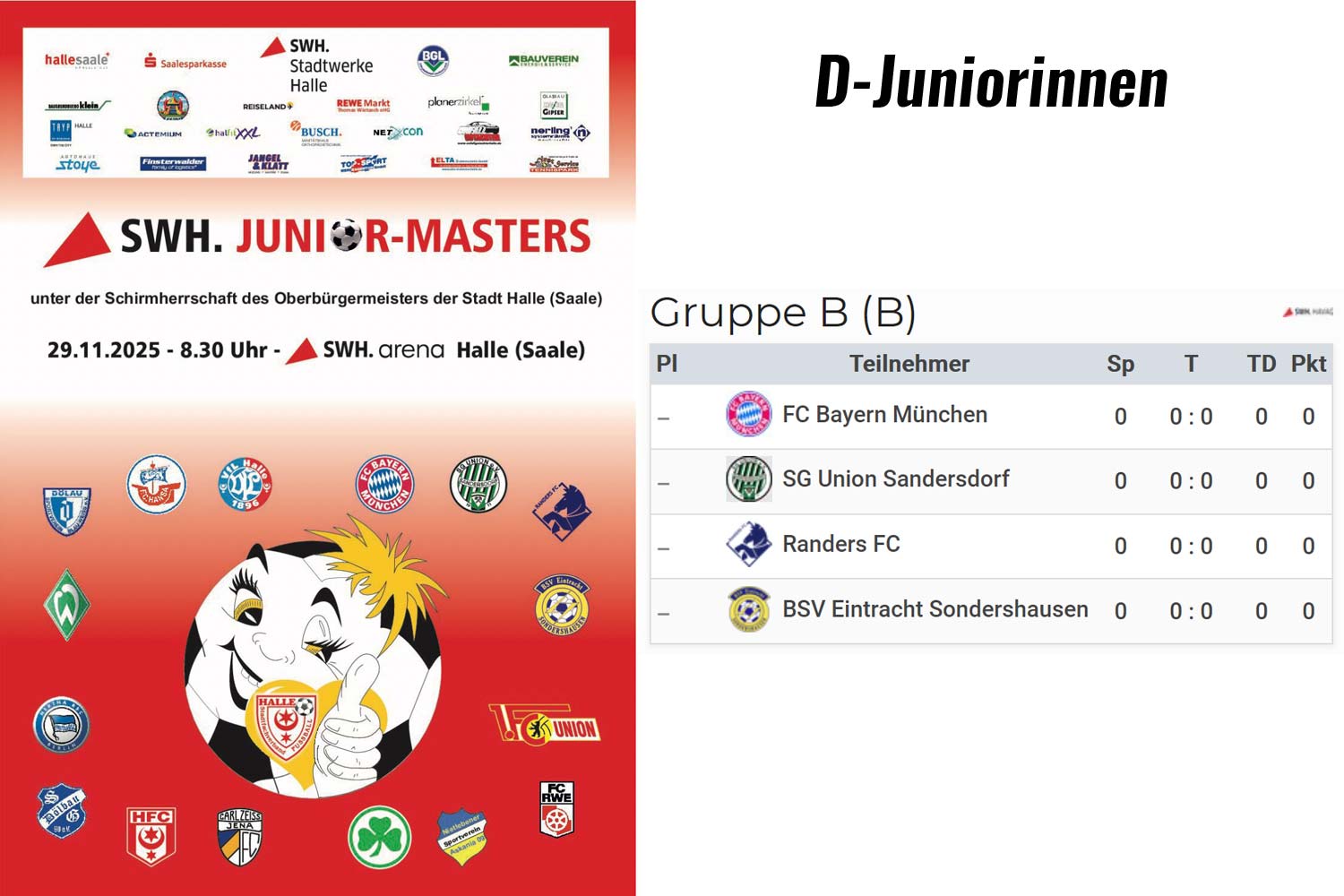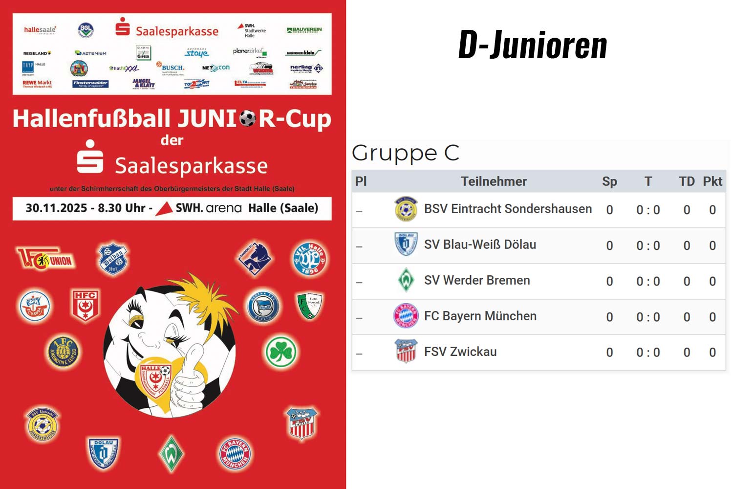 In Halle (Saale) folgen beide Teams der Einladung zum jährlichen Junior-Cup der Stadtwerke Halle bzw. der Saalesparkasse. Gespielt wird Samstag das erste Turnier mit unseren Mädels, gefolgt von unsere D-Junioren am Sonntag an gleicher Stelle. Absolutes Highlight für beide Teams ist das Aufeinandertreffen mit dem FC Bayern München in der Gruppenphase. Zum hochkarätigen Teilnehmerfeld gehören unter anderem auch Union Berlin, Werder Bremen, Hertha BSC und viele mehr. Die 1.200 Zuschauer fassende Arena ist in der Regel zu diesem Turnier annähernd ausverkauft. Los geht es jeweils bereits 8:30 Uhr. Die Vorfreude ist groß!