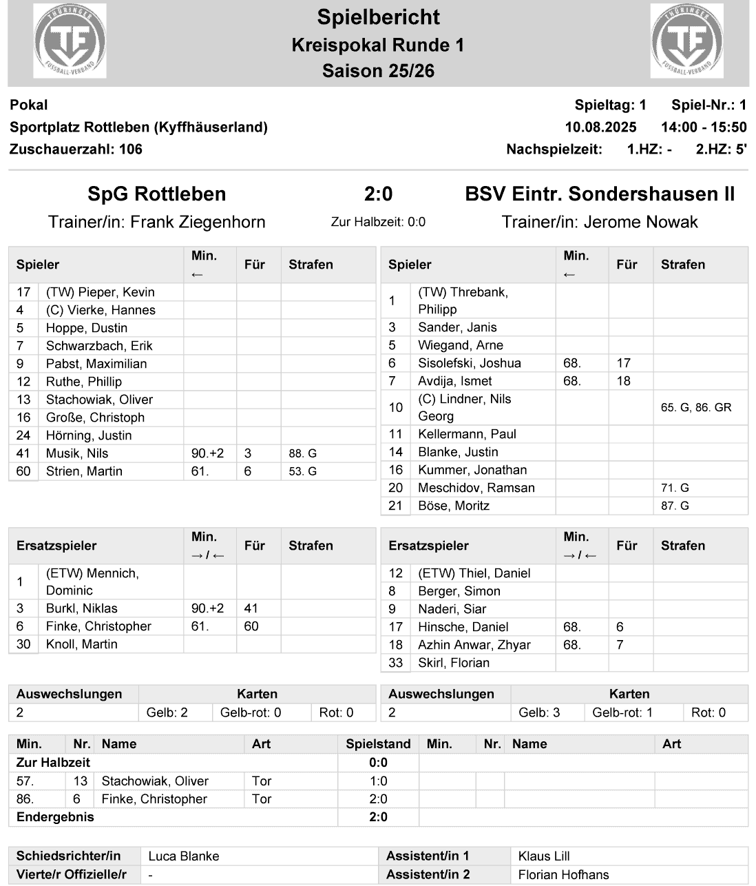 | SpG Rottleben/Göllingen | 2 : 0 | BSV Eintracht Sondershausen II |