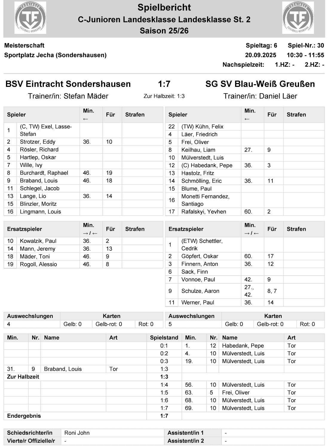 | BSV Eintracht Sondershausen | 1 : 7 | SG SV Blau-Weiß Greußen |