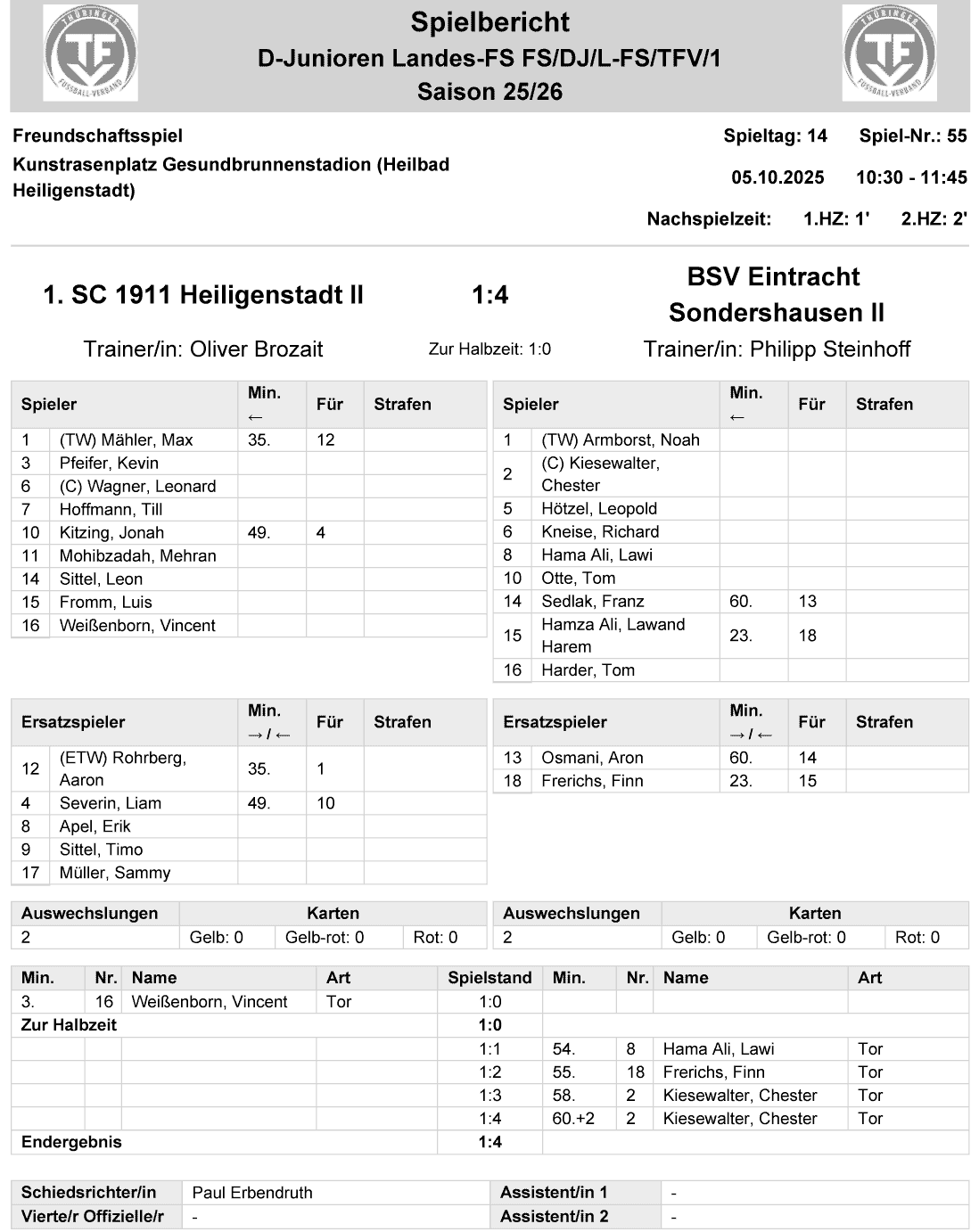 | 1. SC 1911 Heiligenstadt II | 1 : 4 | BSV Eintracht Sondershausen II |